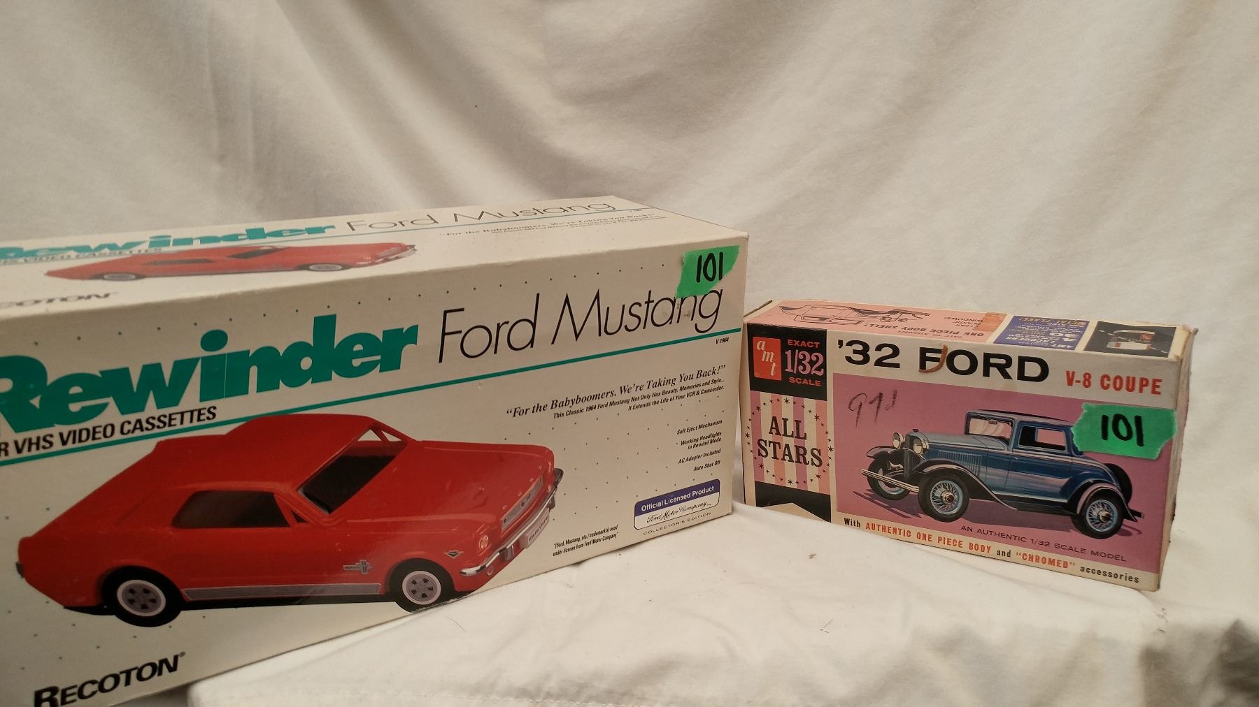FORD MUSTANG VHS REWINDER AND 32 FORD V-8 COUPE MODEL