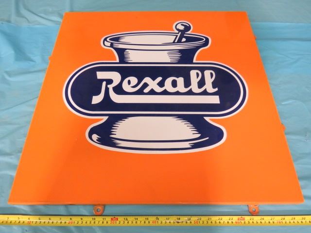 REXALL PORCELAIN SIGN (WITH MOUNTING TABS)