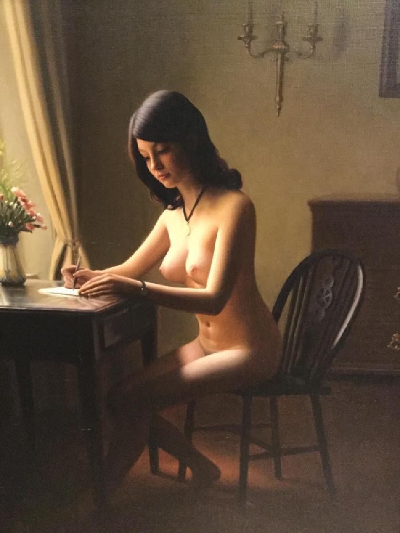 24" X 30 painting of a nude woman sitting by Reza Samimi. Signed.