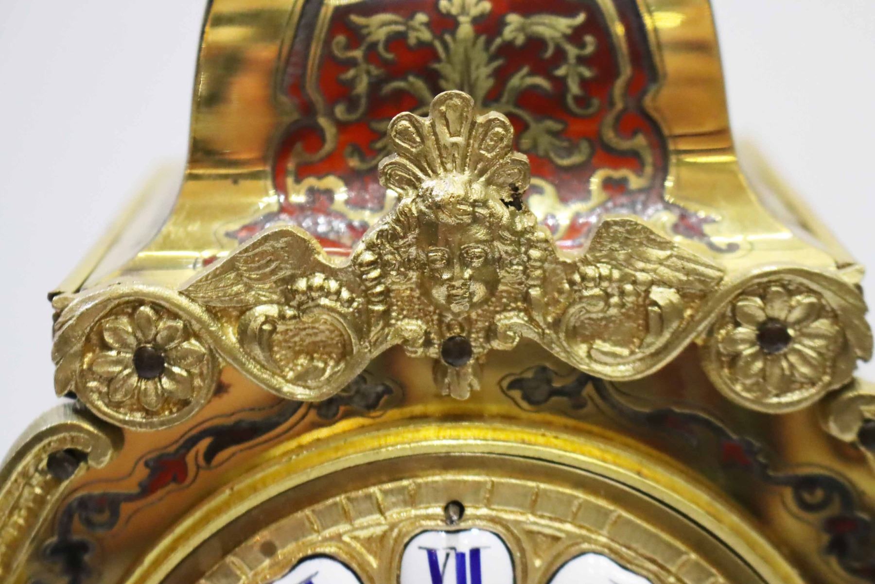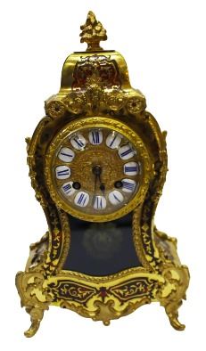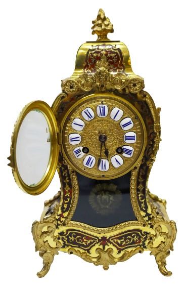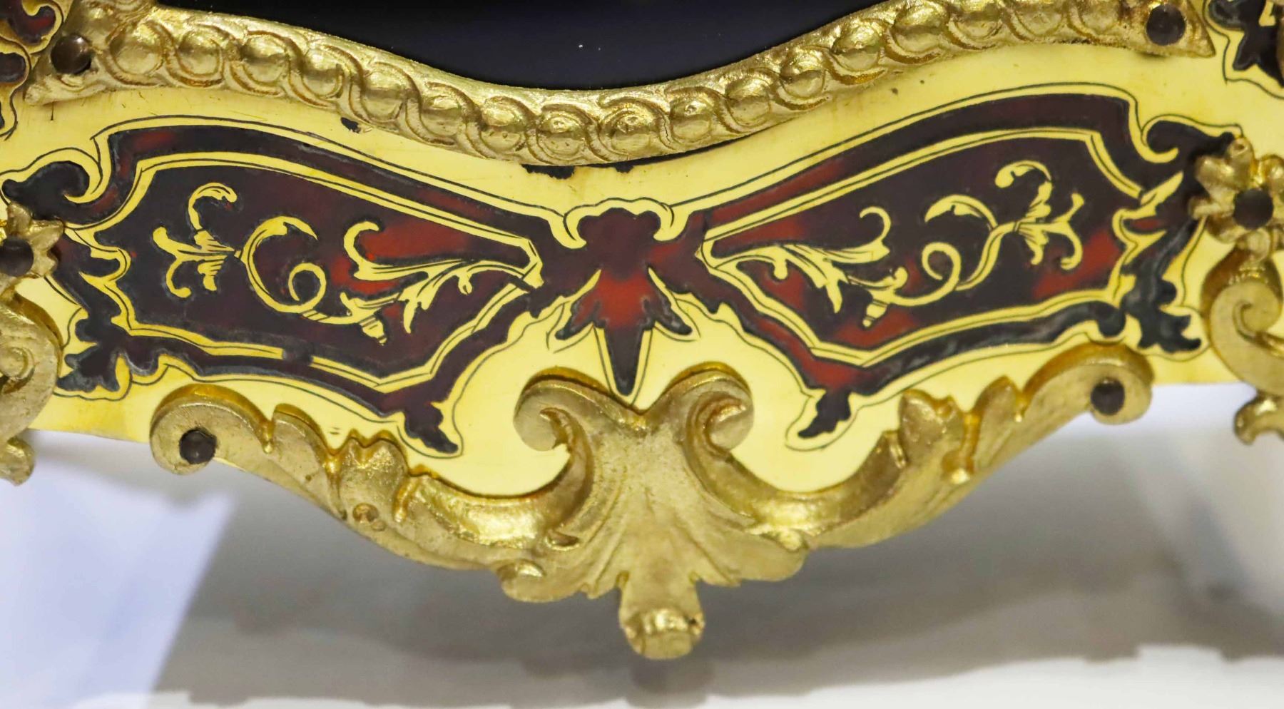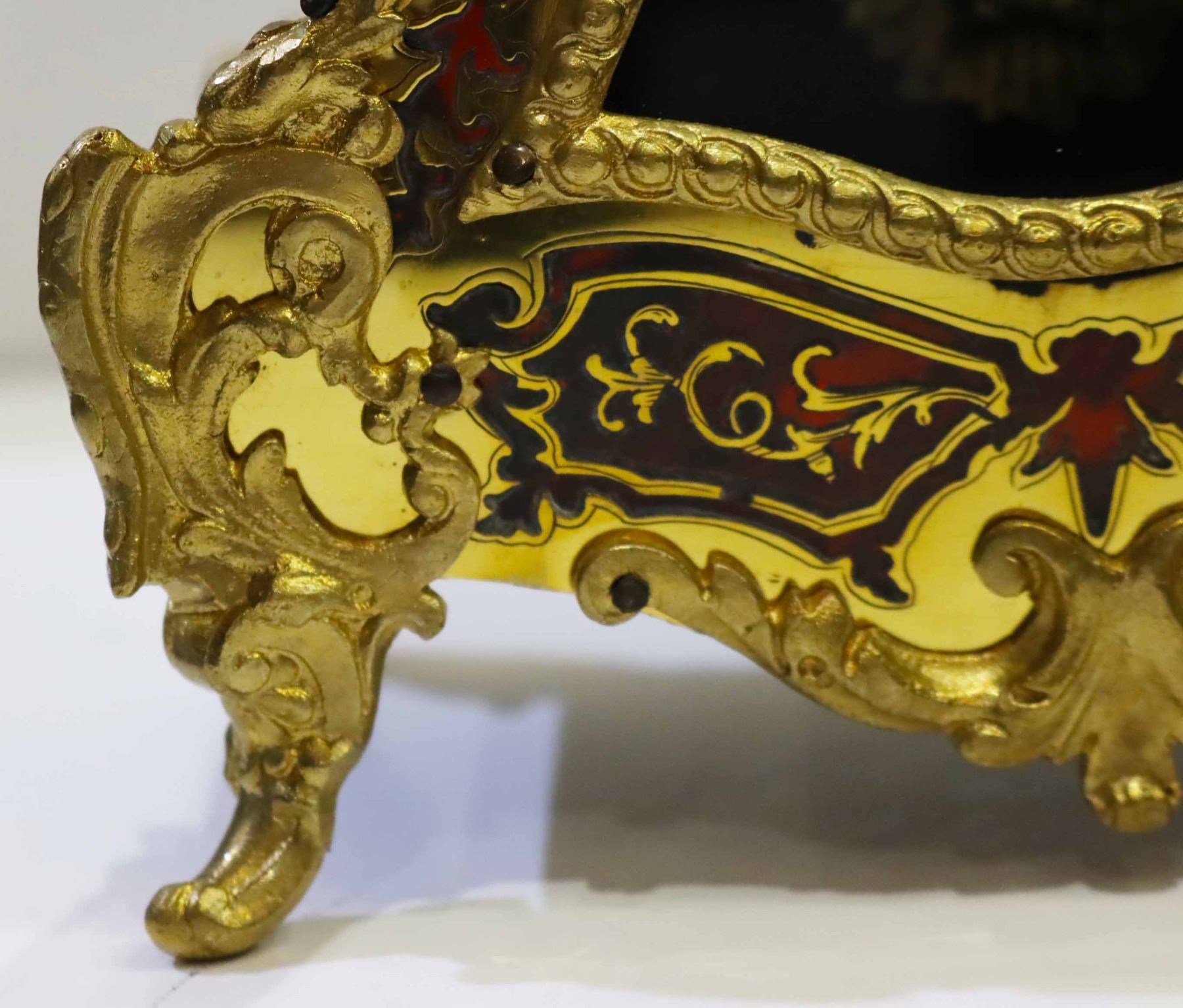 Heowily inlaid brass and tortoise shell bouille work on Bombay case with Dore bronze.