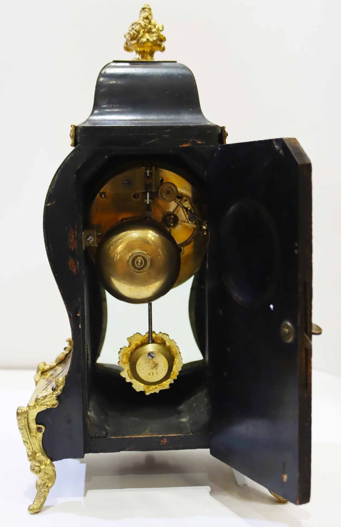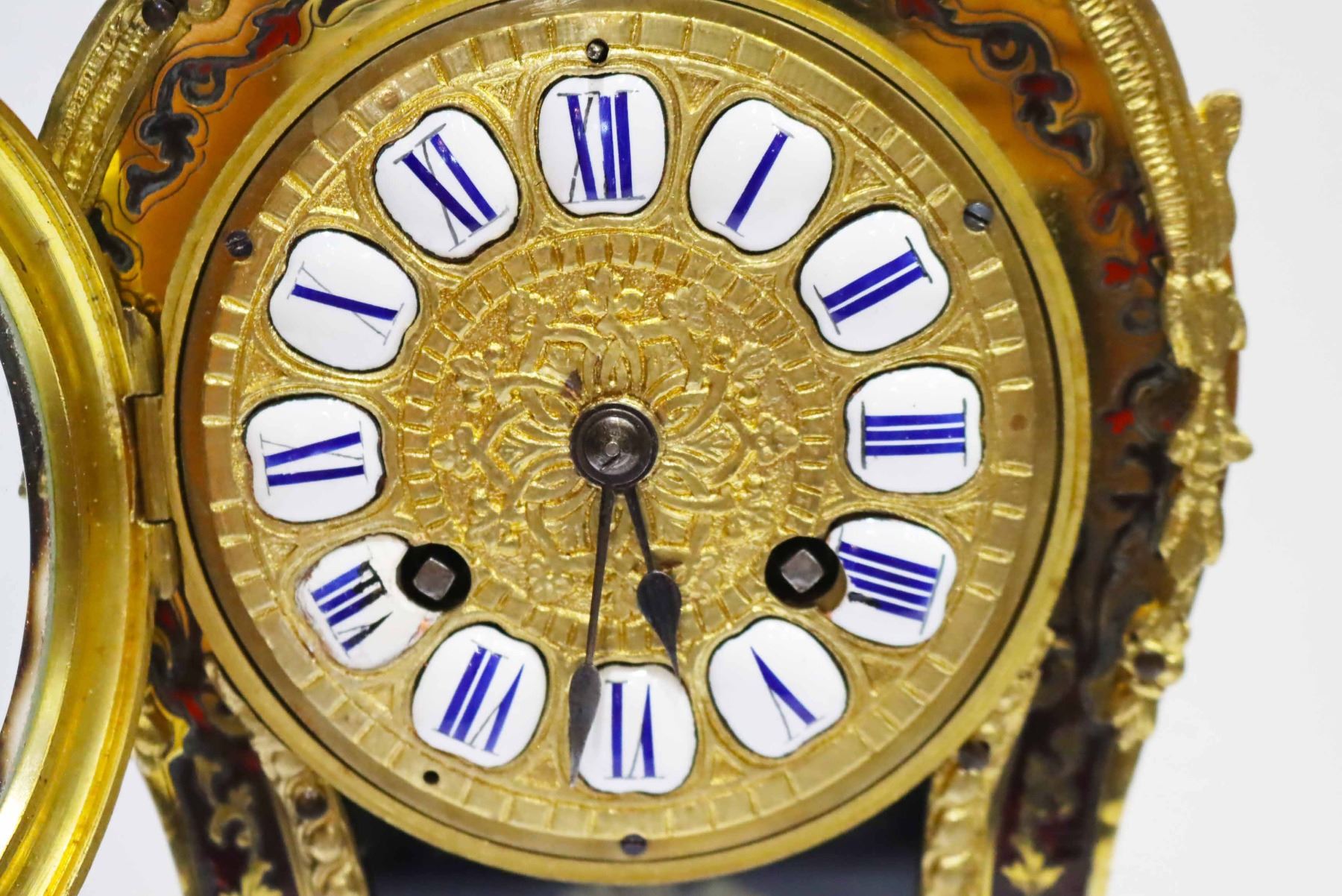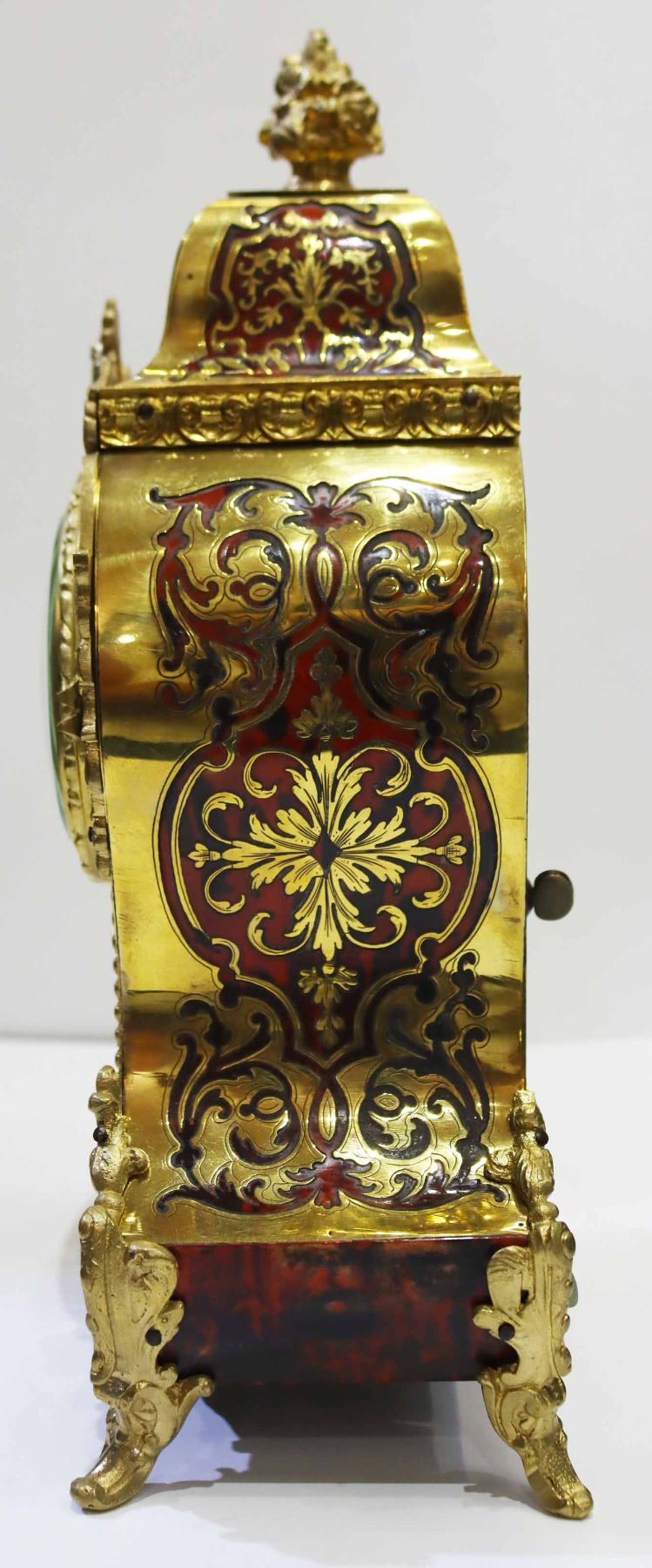 Heowily inlaid brass and tortoise shell bouille work on Bombay case with Dore bronze.