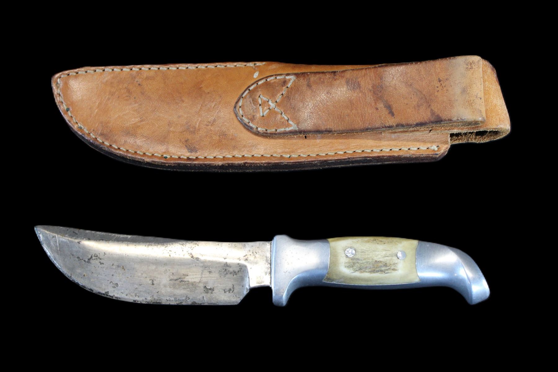 RH Ruana Bonner Montana Knife- "M" Stamp- Original Sheath- 5" Blade- 4" Handle- Fair Condition