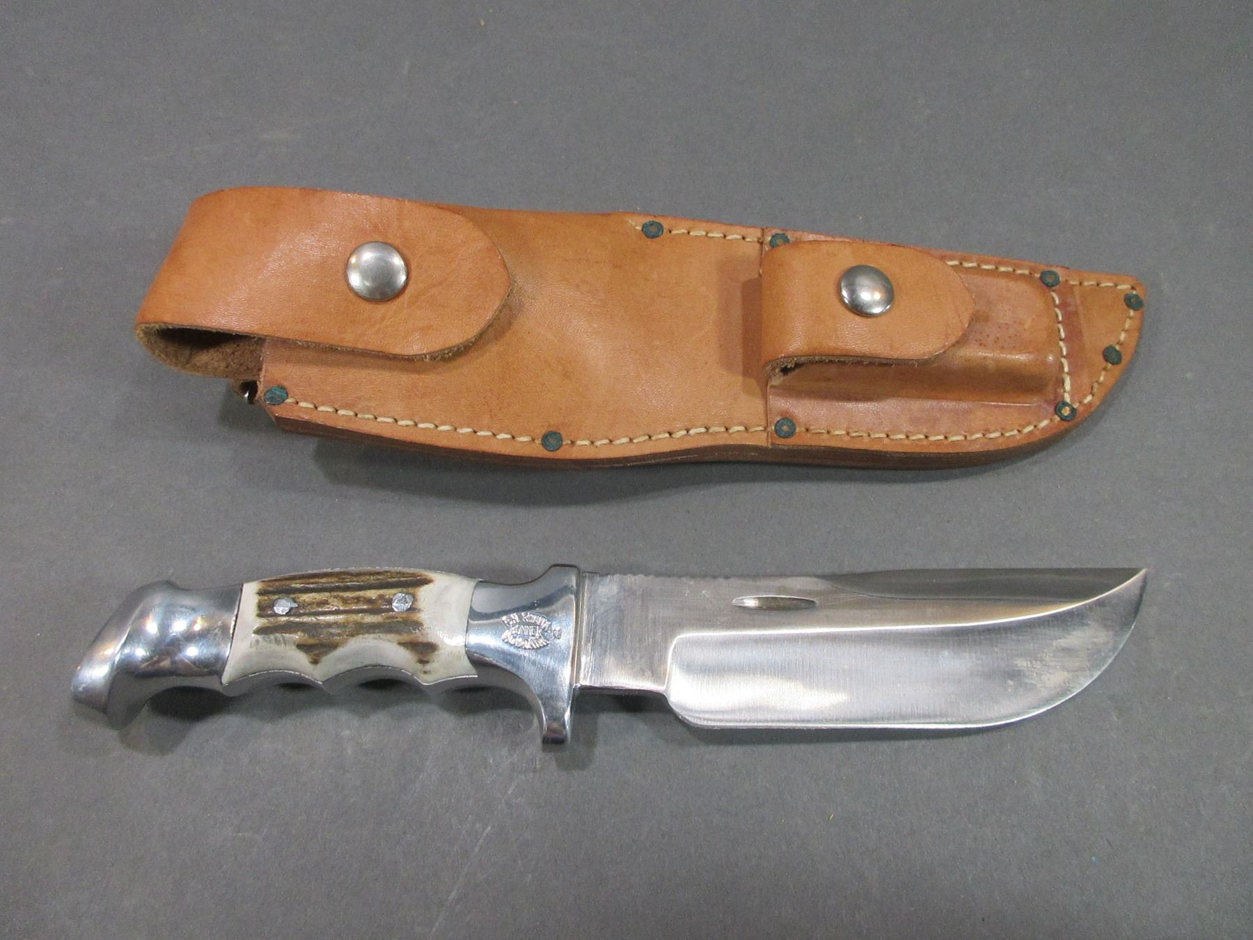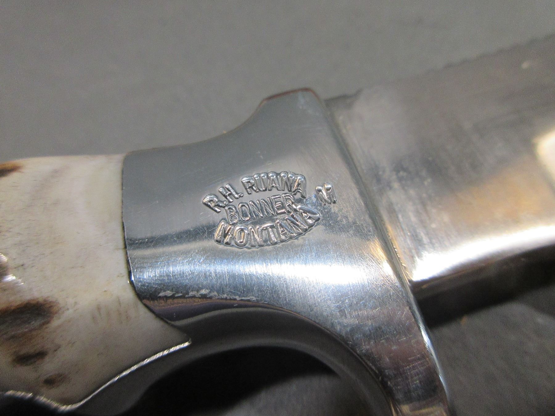 RH Ruana Bonner Montana Knife- Model 20D- M Mark- Original Sheath- Whetstone- 6" Blade- 4.5" Handle- Unused