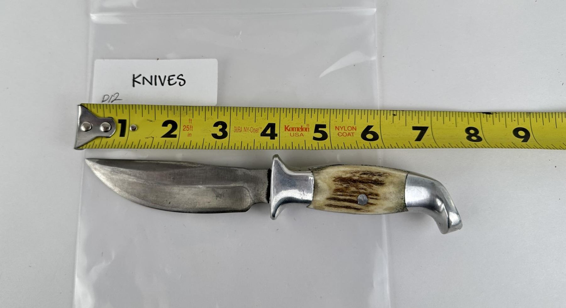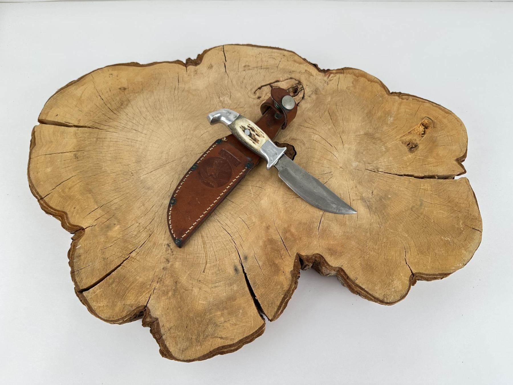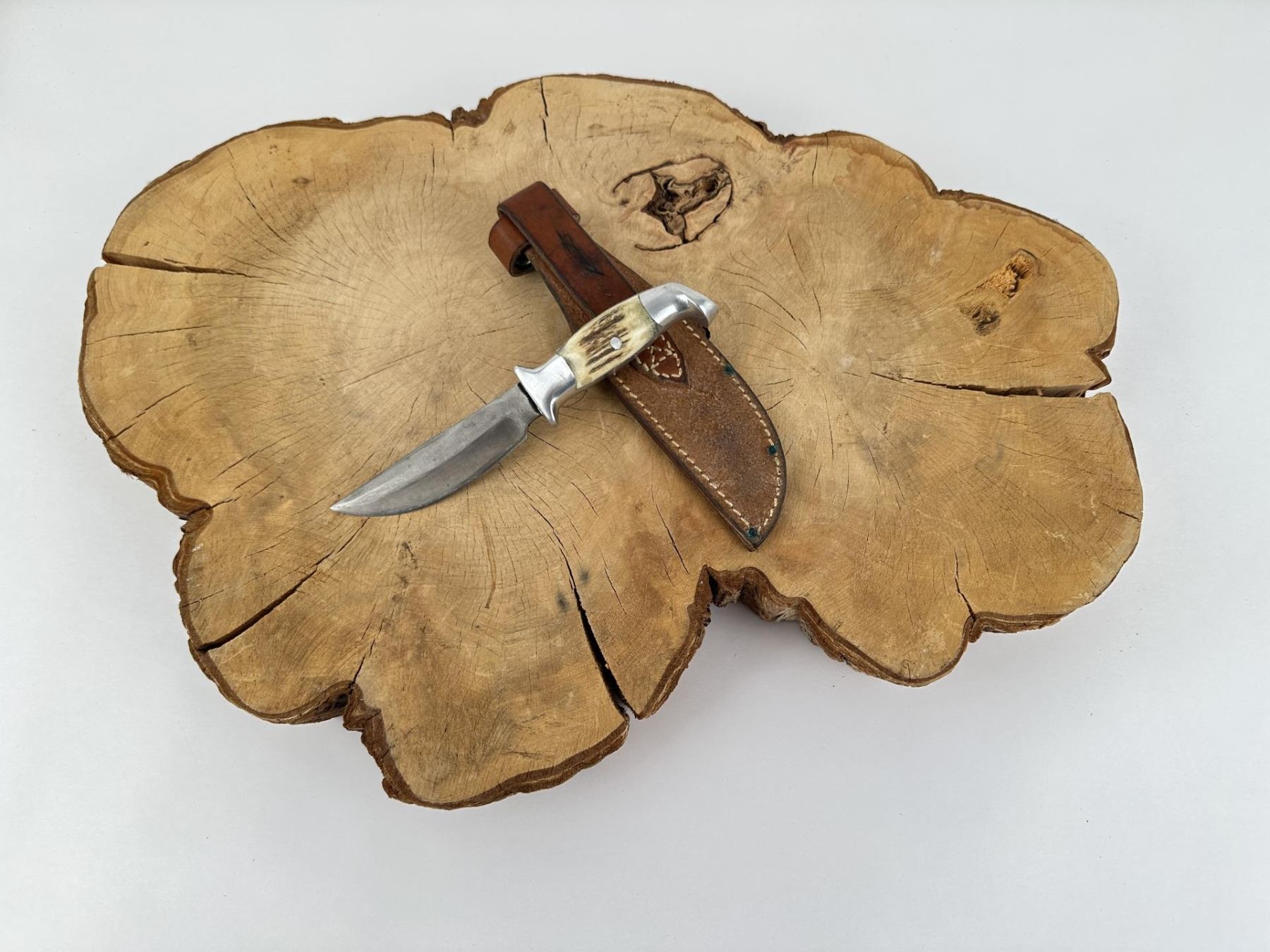 7 1/2" long overall. Knife stamp, one pin. Very nice knife, quite rare.