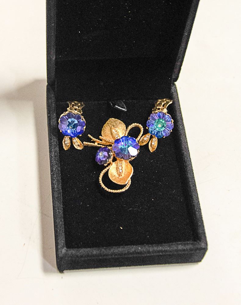 RHINESTONE BROACH W/ MATCHING CLIP-ON EARRINGS