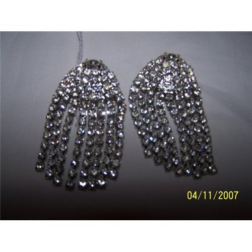 Up for sale is a gorgeous pair of Rhinestone Clip on Earrings. There are 8 strands of rhinestones that come down off the top. There are no missing stones. The backings are tight.