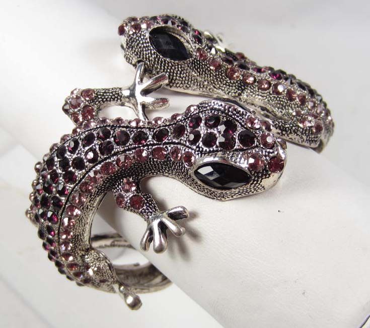 Purple rhinestones w/ spring hinge. Double Gecko bracelet.