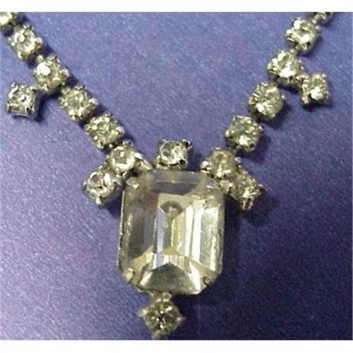 Lovely Deco style rhine stone necklace and pair of matching earrings, Made by Continental, well known Co. for quality., This set is made from lovely clear color stones. US Buyer please pay 7.00 for shipping plus insurance.Thanks for looking!