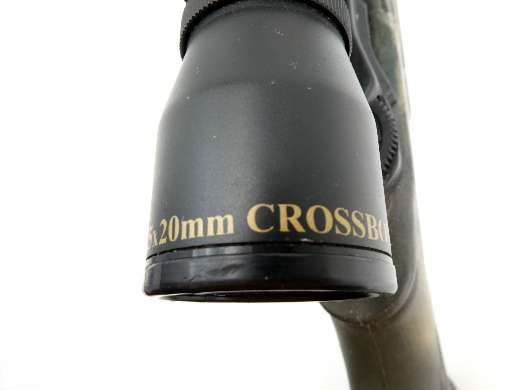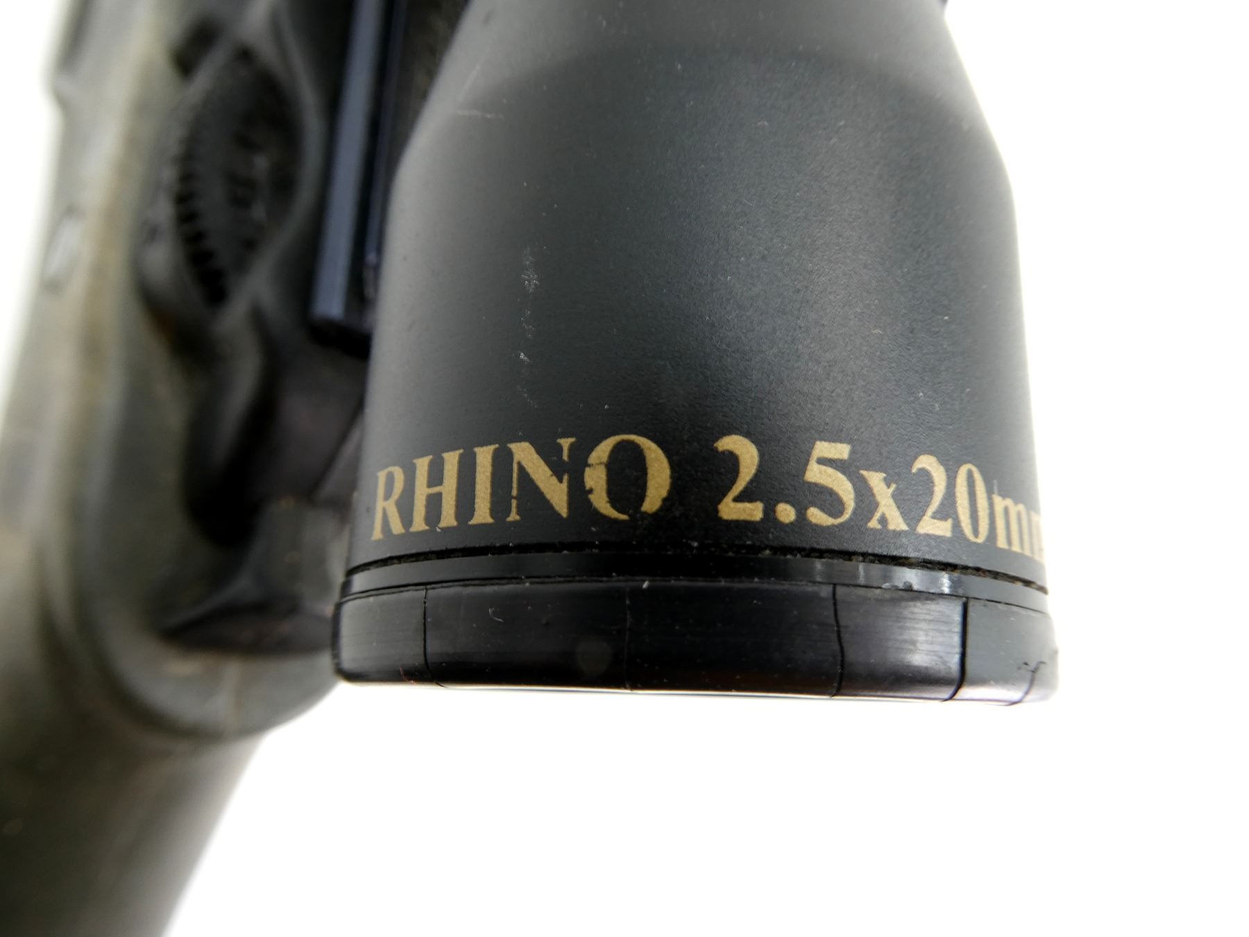 LOT INCLUDES; (1) COMPOUND CROSS BOW, UNKNOWN SPEED OR DRAW WEIGHT, (1) BARNETT RHINO 2.5X20MM CROSSBOW SCOPE, CLEAR OPTICS, (1) STRING, APPROX. OAL36", SHOWS WEAR AND TEAR FROM USAGE, SEE PHOTOS.
