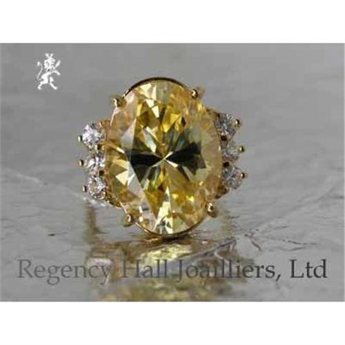 This spectacular Oval Canary CZ Ring is perfect for day or night. The Pure White cubic zirconium side stones set off the center oval to perfection. The ring is Heavy 18k Gold over Solid Sterling Silver. Size 6.