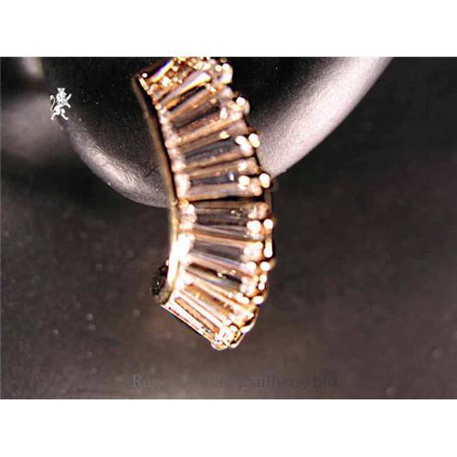 Read this description. Know what you are buying. Brilliant Flawless Cubic Zirconium Tapered Baguettes swirl into a hoop ear clip. These elegant earrings were Hand Crafted in 18k Gold plate on Sterling Silver. Modern and sophistocated enough to go to a Board Meeting or a luncheon with the girls. These earrings were created in the early eighties by Regency Hall Joailliers, Ltd.