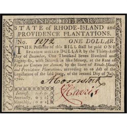 RI-282. Rhode Island. July 2, 1780. $1. CH UNC64.
