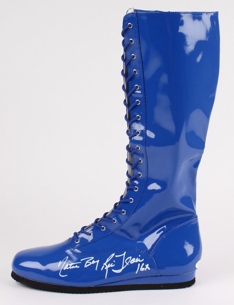 Wrestling boot hand-signed and inscribed in white paint pen by Ric Flair.