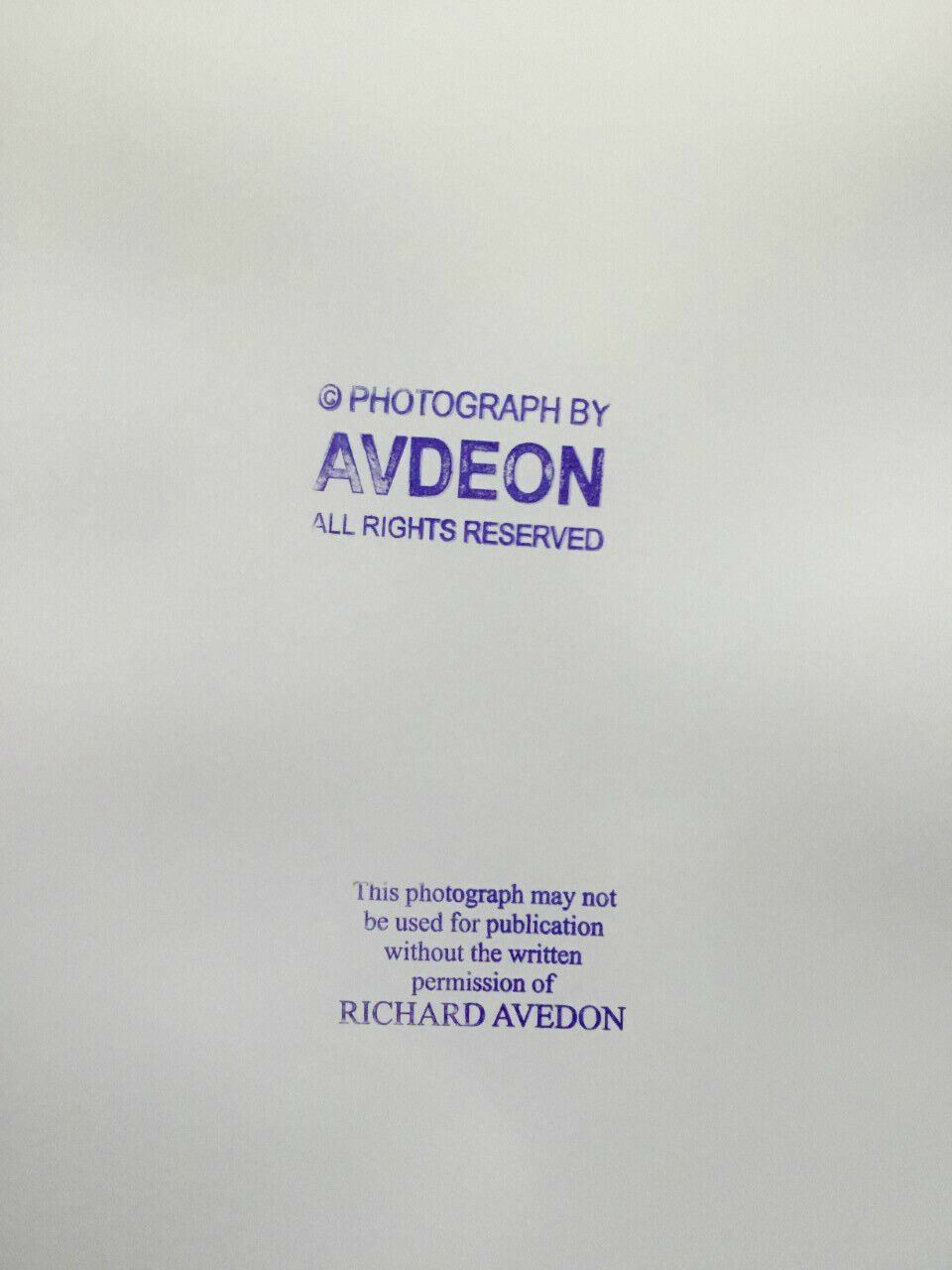 Picasso April 1958 by Richard Avedon. Printed later. The print is 20x16 inches,image is 18x14 inches and has a photograph by AVEDON stamp and copright Richard Avedon stamp on verso. It's mounted and framed.