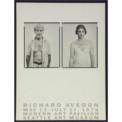 Richard Avedon Poster containing two portraits. The left side is identified as ''William deKooning, painter, Springs, Long Island 8.18.69''. The right is identified as ''John Martin, dancer, New York 3.20.75''. Signed in pencil.