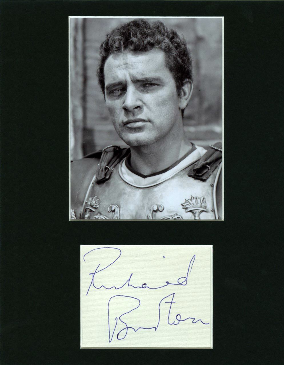 Probably more frequently remembered for his turbulent personal life and multiple marriages, Richard Burton was nonetheless regarded as one of the great British actors of the post-WWII period. An autograph from Richard Burton. Professionally mounted and framed.