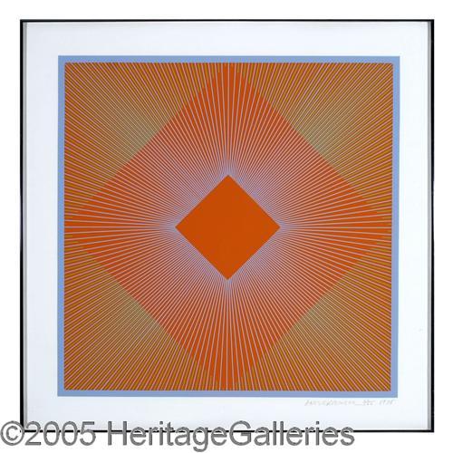 <B>RICHARD JOSEPH ANUSKIEWICZ (American b. 1930)</B></I><BR><I>Orange Geometric Composition,</B></I> 1978<BR>Colored Lithograph<BR>27.5in.x 27.5in.<BR>Signed numbered and dated lower right<BR>Edition: 66/100<BR>