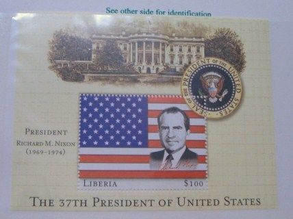 RICHARD M. NIXON $100 LIBERIA MYSTIC STAMP *RARE MINT S/S STAMP IN ORIGINAL PROTECTOR*!! ***Coins, Gemstones, Currency & All Items Listed in this auction - Grades, Conditions and Values are not Safe Deposit Coins LLC Responsibilty. Grades, Condition and Values are determined by Consigner(s) & Buyers ONLY***