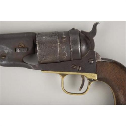 <B>RICHARDS CONVERSION OF 1860 COLT ARMY REVOLVER</B></I> - Serial Number 191534, circa 1870s. 7½" barrel in .44 Colt center fire cartridge. All serial numbers match throughout. Wood grips. Mechanically functions. All features are standard for this cartridge variation. <BR><BR><B>Condition:</B></I> Revolver is basically black with deep pitting on cylinder, barrel frame and loading gate. Barrel address pretty well gone. Wood grips may not be originally on this revolver but are definitely old.<BR><BR><b>Shipping:</b> Bats, Clubs, Sticks, Swords, Rif (<a target="_blank" href="http://www.heritageauctions.com/common/shipping.php">view shipping information</a>)