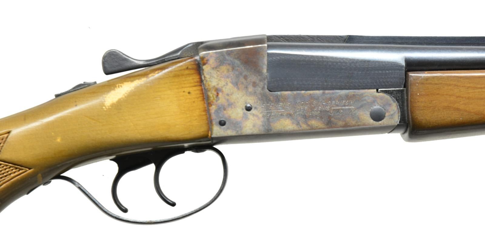 1) RICHLAND ARMS MODEL 711. Cal. 10 Ga., 3 1/2". S# 47099. Bbls. 32" w/ brass bead & fixed Full & Full chokes. Blued boxlock action w/ simple scroll highlight engraving. Dbl. triggers. Extractors. Beavertail forearm & capped pistol grip walnut stock w/ hand checkering. LOP: 14 3/4" over aftermarket brown ventilated Pachmayr pad. WEIGHT: 10 lbs., 13 oz. Mfg. in Spain by Zabala. CONDITION: over 95% original blue showing edge wear. Original stock finish shows numerous dents, scratches & gouges. Good bright bores. (21-94/DS). 2) STEVENS 311 SERIES H. Cal. 410, 2 1/2" & 3". S# C712830. Bbls. 26" w/ steel bead. Fixed Mod. & Full chokes. Case colored boxlock action. Dbl. triggers. Extractors. Forearm & pistol grip hardwood stock w/ pressed checkering & original buttplate. WEIGHT: 6 lbs., 6 oz. CONDITION: over 95% bbl. blue showing spots of finish loss on left bbl. 90% Lightly faded case colored finish showing sm. dark spots on bottom of receiver. Original stock finish shows numerous scratches & sm. spots of finish loss. Good bores. (21-110/DS). BOTH MODERN. $700-1,000.