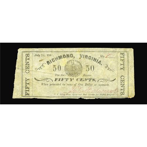 RICHMOND, VA- J.D. Edwards 50¢ July 14, 1862 Jones PR60
