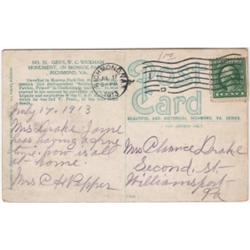 Postcard titled "Gen'l W.C. Wickham Monument (In Monroe Park) Richmond, Va." 1913 postmark on reverse.