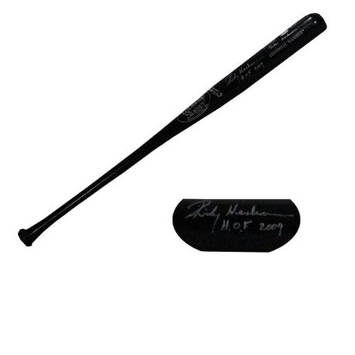 RICKEY HENDERSON AUTOGRAPHED "HOF" BLACK BAT **|**|** Rickey Henderson played for twenty-five seasons breaking many Major League Baseball records. Henderson holds the record for most steals in a season with 130 in 1982, he also has the most Stolen Bases all-time with 1406, he scored 2295 Runs which is the most all-time. In 2009 Henderson was voted into the MLB Hall of Fame. Rickey Henderson has hand signed this black bat and added the Inscription "HOF"