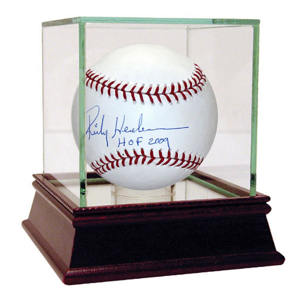 RICKEY HENDERSON AUTOGRAPHED MLB BASEBALL INSCRIBED "HO **|**|** Baseball legend Rickey Henderson personally hand-signed this MLB Baseball and inscribed it "HOF 2009." Rickey Henderson played for twenty-five seasons breaking many Major League Baseball records. Henderson holds the record for most steals in a season with 130 in 1982, he also has the most Stolen Bases all-time with 1406, he scored 2295 Runs which is the most all-time. In 2009 Henderson was voted into the MLB Hall of Fame. This Rickey Henderson autograph is guaranteed authentic