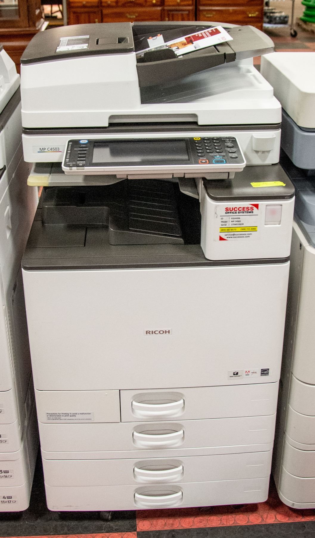S/N 175M510239 VERIFIED METER - BLACK @ 120,733; COLOUR @ 161,605 MSRP (NEW) $36,167.00 45 PAGE PER MINUTE COPY/PRINT/SCAN OPTIONAL FAX MODULE & FAX RECEPTION TRAY INCLUDEDUP TO A3 (11"X17") PAPER 1X 550 SHEET LETTER-SIZED PAPER TRAY O 3 X 550 SHEET USER-ADJUSTABLE PAPER TRAY 100 SHEET BYPASS AUTOMATIC DUPLEX MODULE FOR 2-SIDED COPY/PRINT 220 SHEET SINGLE-PASS “DUALSCAN” AUTOMATIC DOCUMENT FEEDER 2.0GB RAM; 250GB HDD ADDITIONAL ACCESSORIES AVAILABLE (SEE BROCHURE) - CONTACT US FOR MORE INFO 100 DAY WARRANTY WITH ONGOING SERVICE MAINTENANCE AGREEMENT AVAILABLEIF YOU HAVE ANY FURTHER QUESTIONS IN REGARDS TO THE ABOVE, REQUIRE TONER OR SERVICE, OR WOULD LIKE TO DISCUSS THE MAINTENANCE AGREEMENT, DO NOT HESITATE TO CONTACT ME DIRECTLY AT CHARUK@SUCCESSOS.COM OR AT OUR SASKATOON OFFICE -306.665.2172.