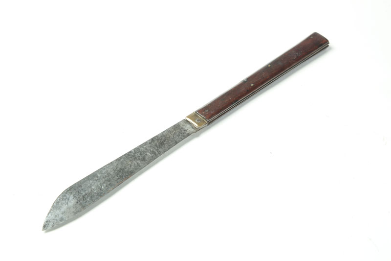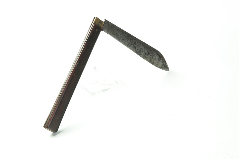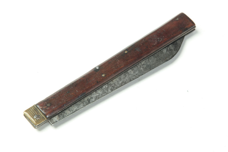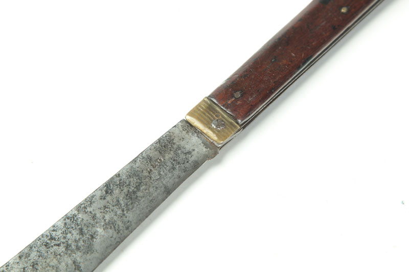 Marked by Lamson and Goodnow, Shelburne Falls, Massachusetts, ca. 1850. Folding knife with walnut handle. Imperfections. 17"l. open.