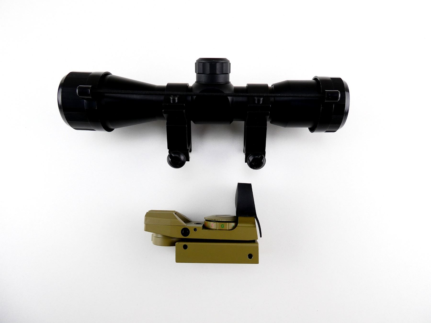 RIFLESCOPE 4X32MM COMPACT RIFLE SCOPE AND ELECTRO DOT 1X33MM REFLEX RED DOT SIGHT LOT