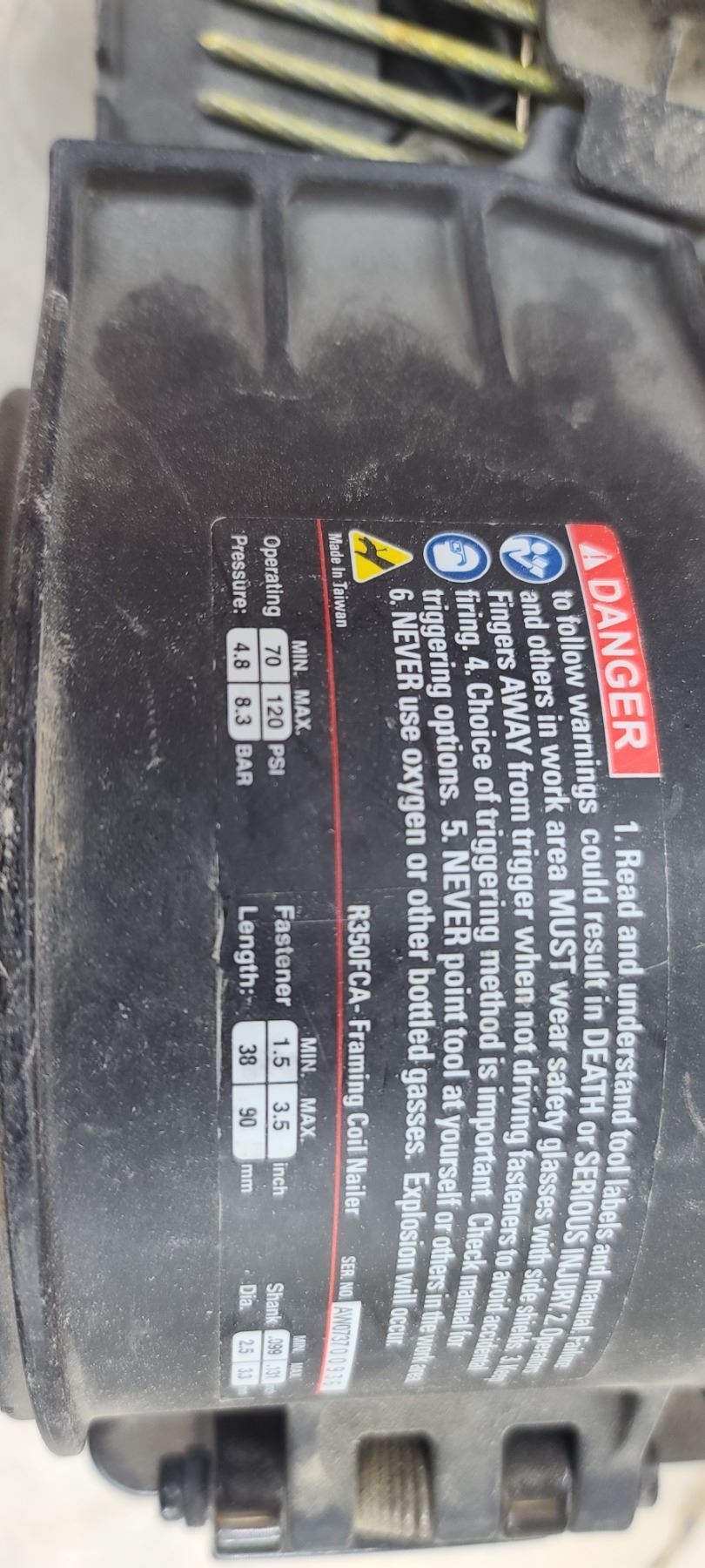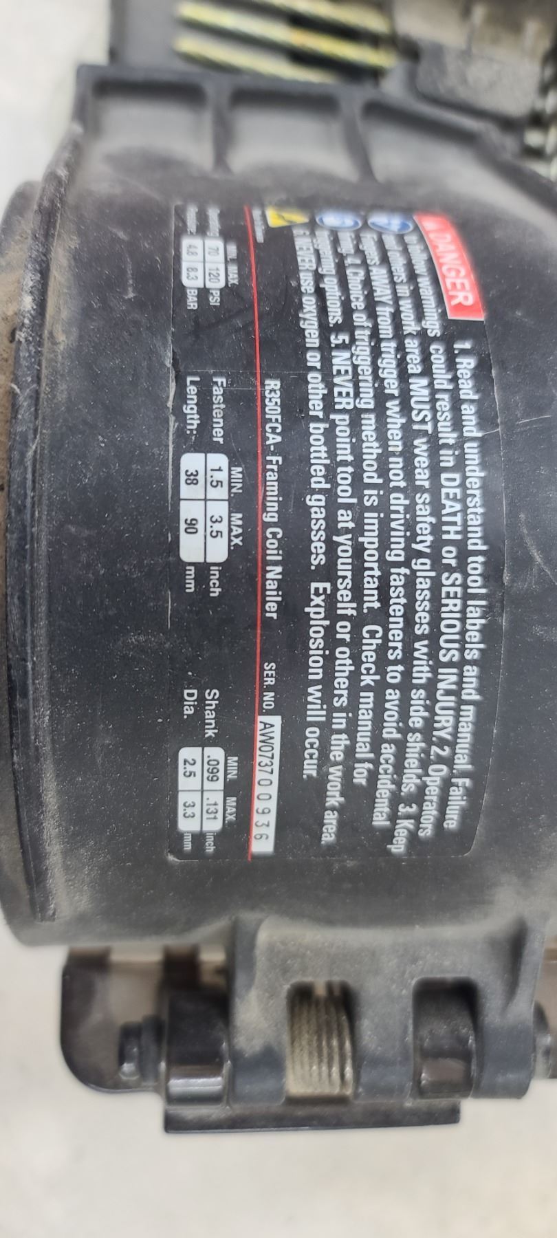 RIGID 1.5 TO 3.5" FRAMING COIL NAILER MOD R350FCA