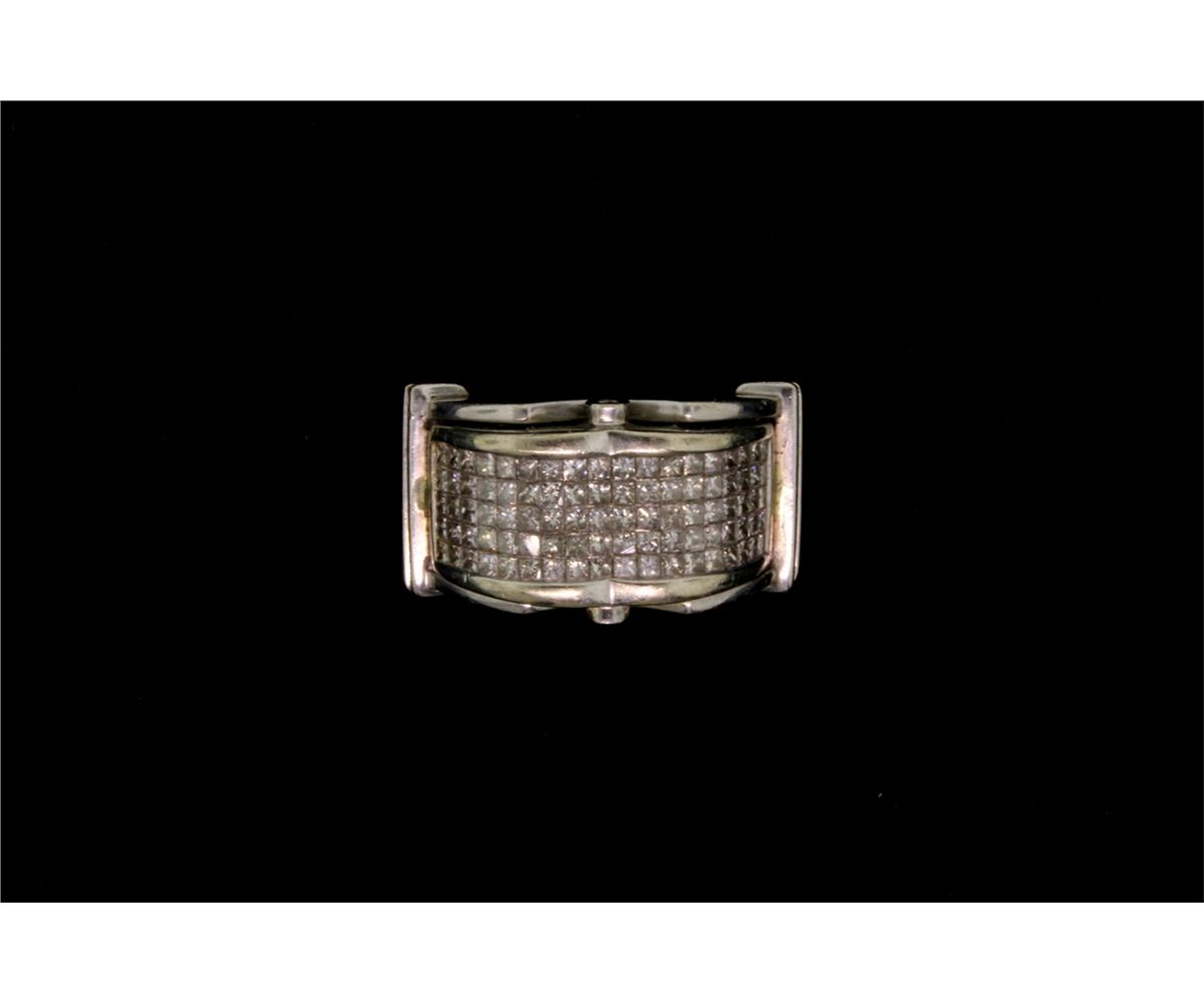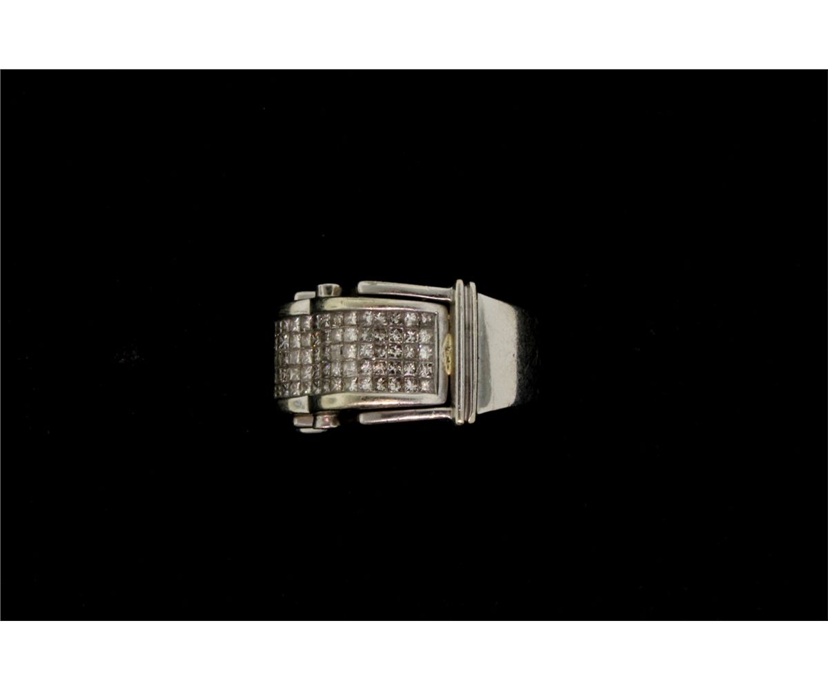 RING: [1] 14KWG ring set with 2 round and 90 princess cut diamonds, approx. 2.25 cttw., good/ H/I/ SI; size 11; 16.4 grams.