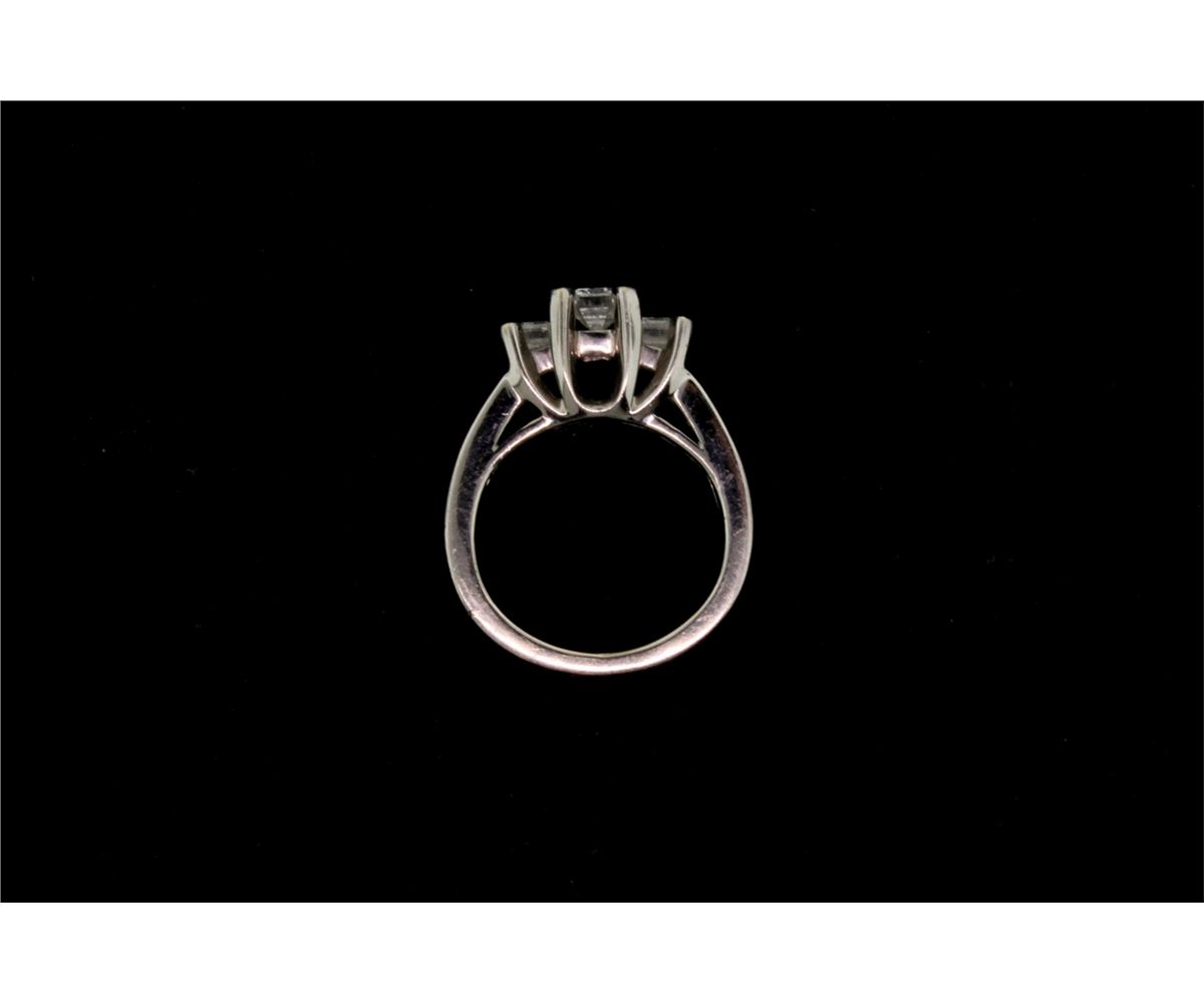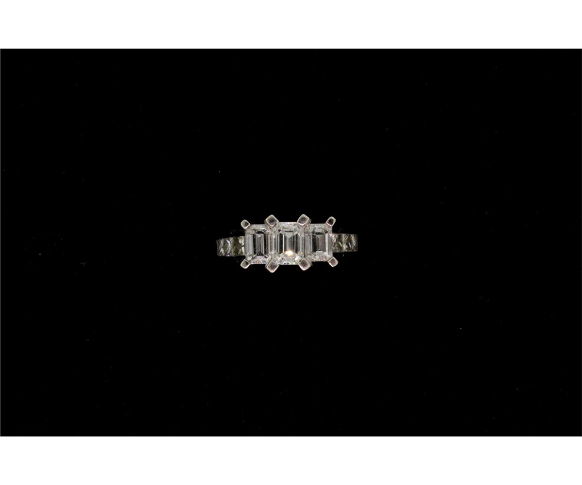 RING: [1] 14KWG ring set with 6 princess cut and 3 emerald cut diamonds, (sides: 5.02 x 3.50mms, ea; and center 5.34 x 3.93mms) approx. 1.98 cttw., v. good/ G-I/ VS2-SI2; size 5; 6.3 grams.