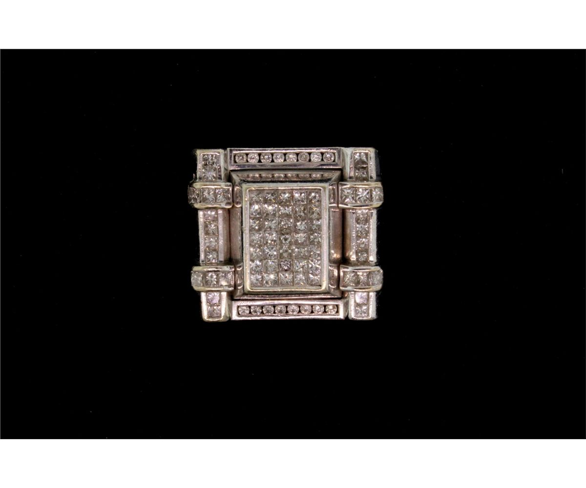 RING: [1] 14KWG ring set with 63 princess cut and 16 round cut diamonds, approx. 3.39 cttw., good-fair/ I/J/ SI2-I1; 23.3 grams