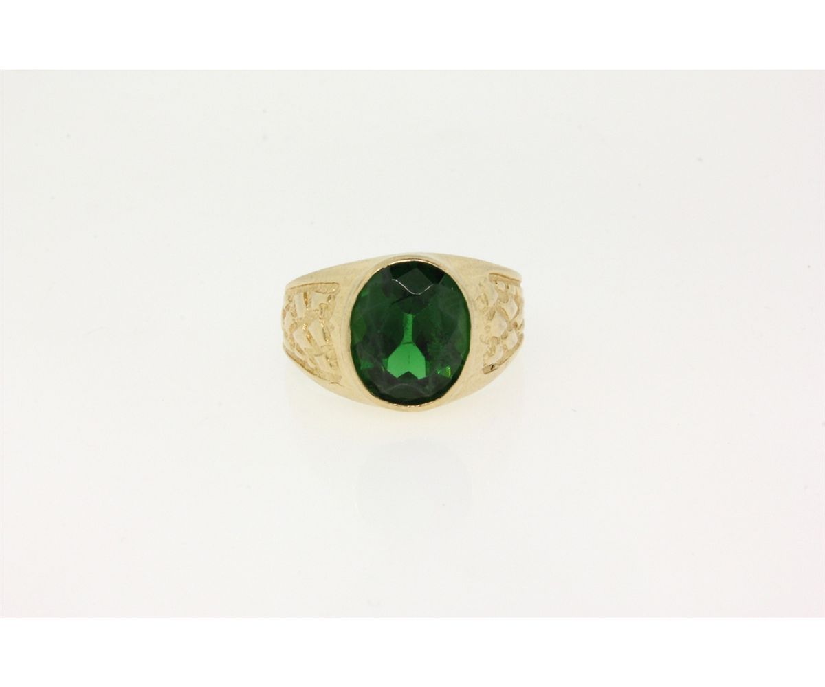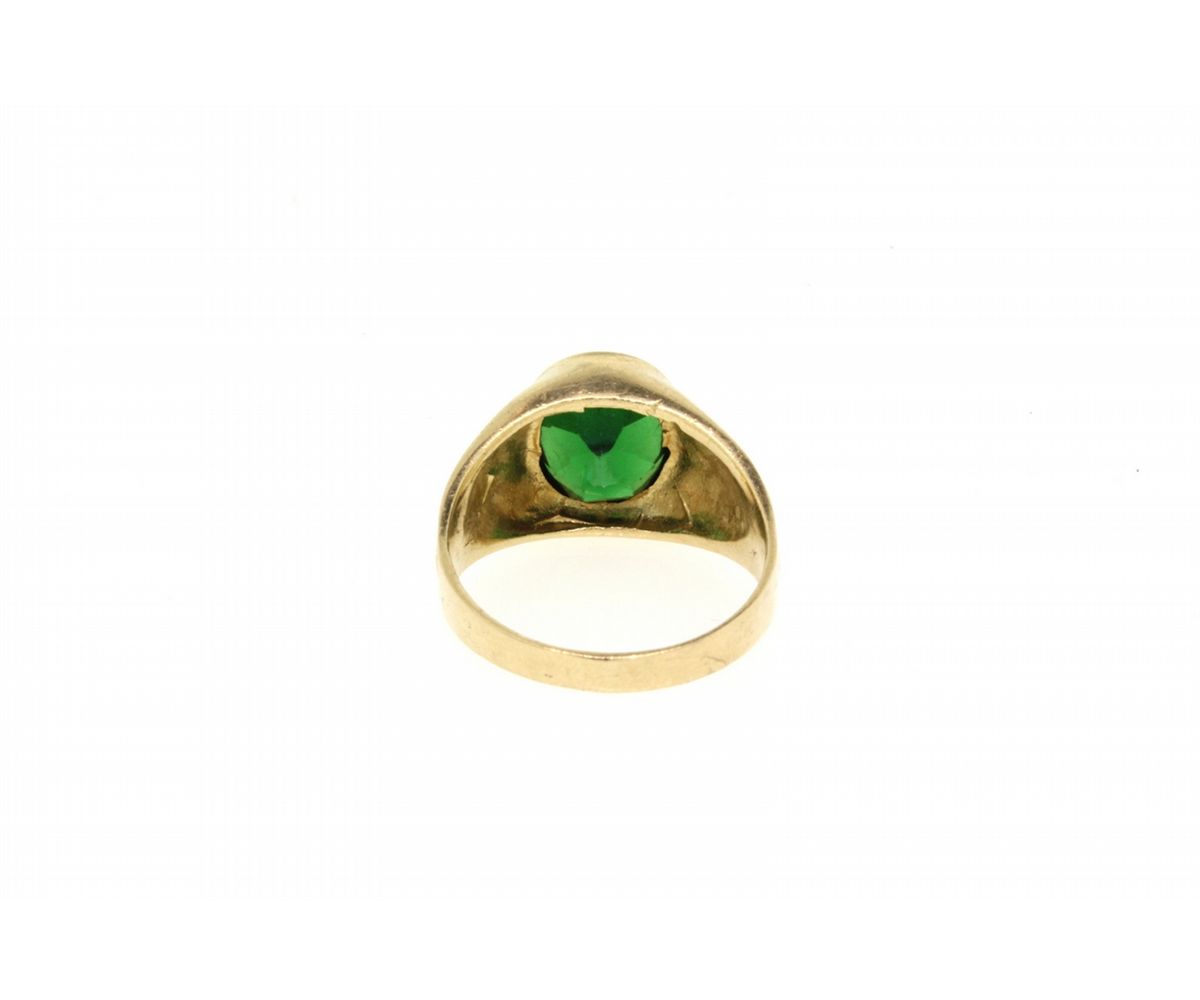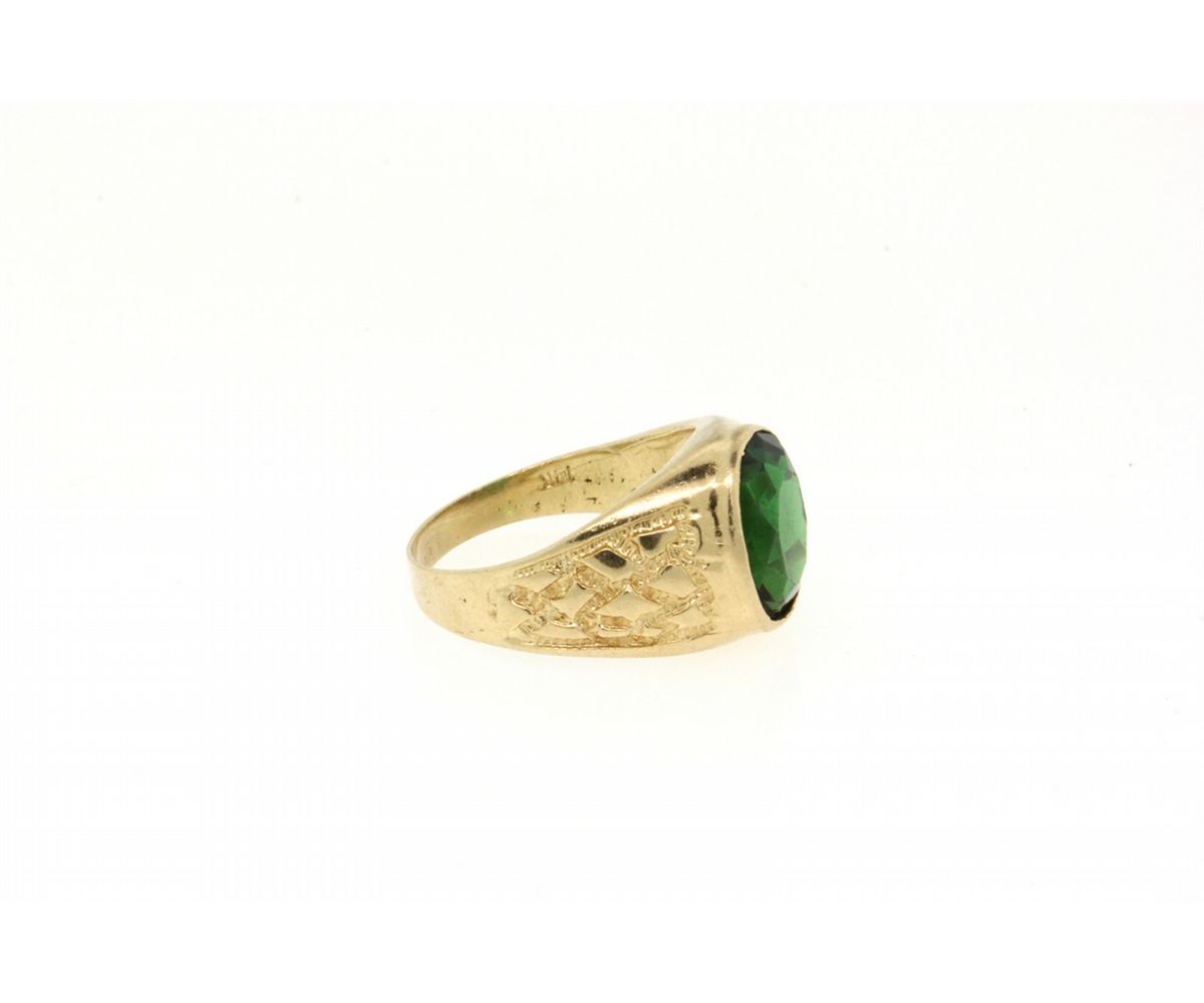 RING: [1] 14KYG ring set with an oval green glass stone; size 9; 6.6 grams.