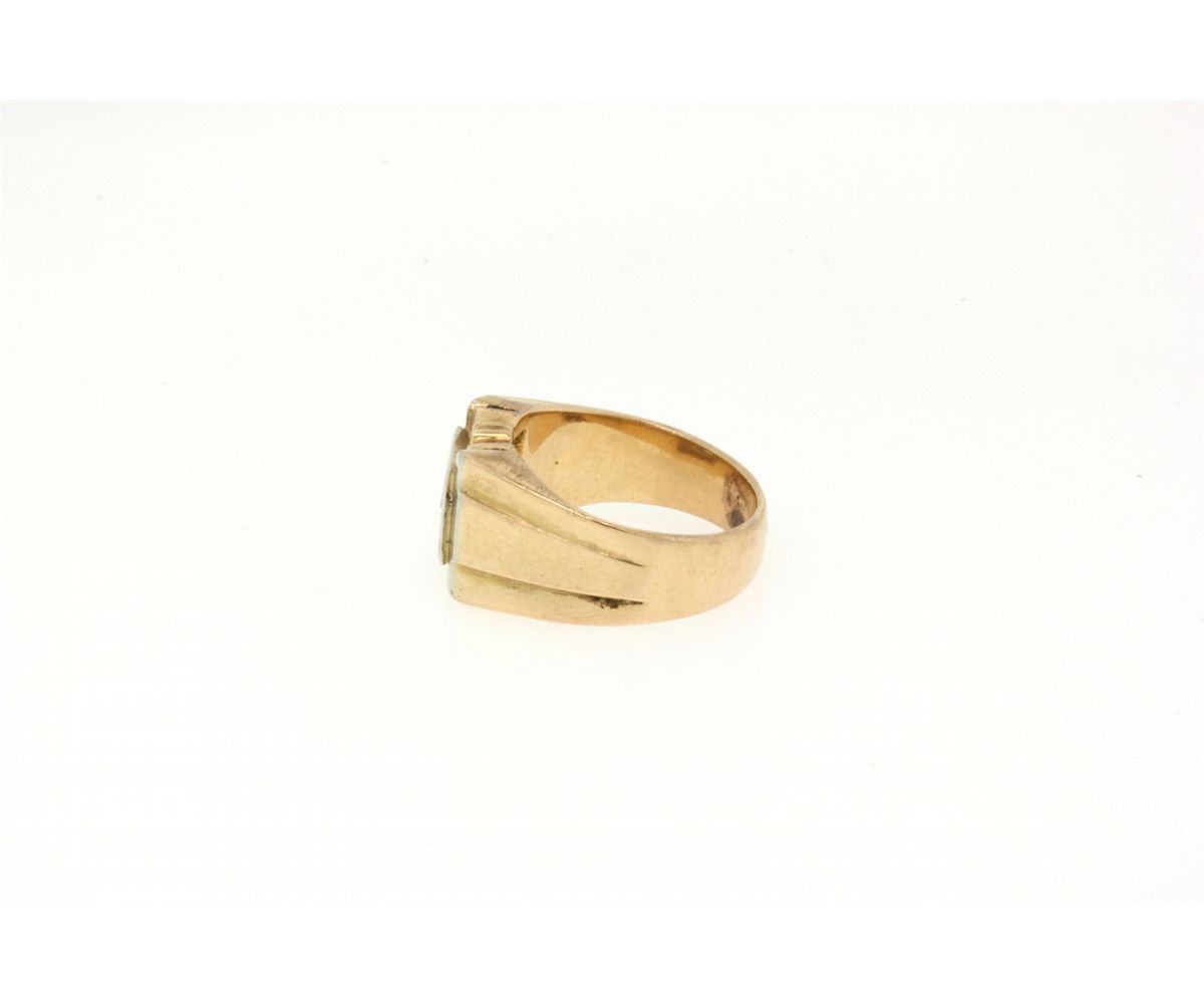 RING: [1] 18KYG ring set with a synthetic clear stone; size 9; 15.8 grams.