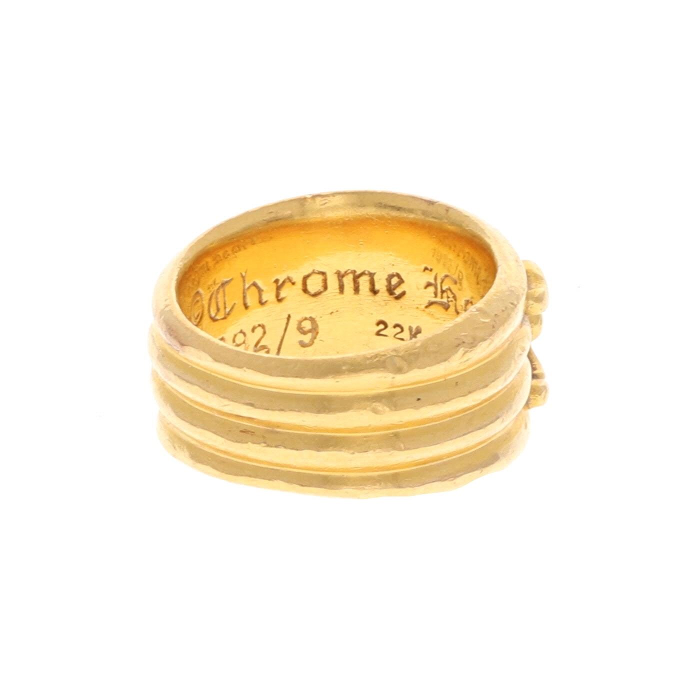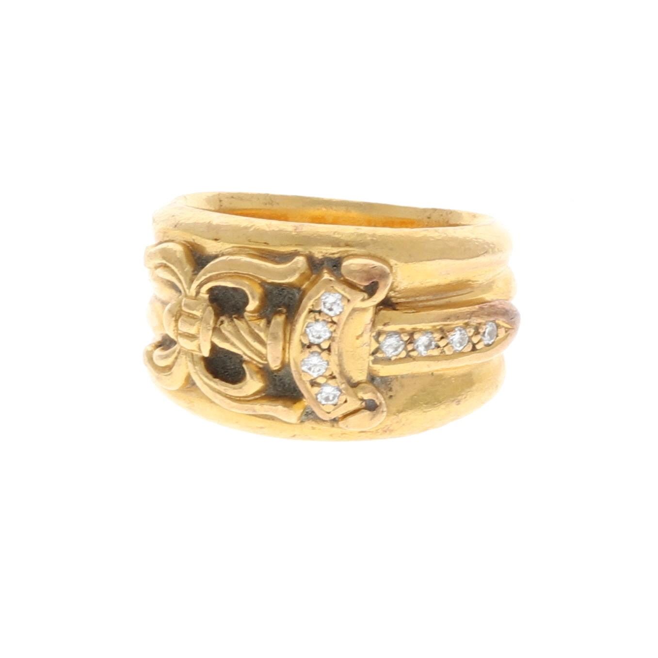 RING: [1] 22kt yellow gold Chrome Hearts "1992/9" Dagger ring with (8) pave set round brilliant cut diamonds, estimated 0.12 carat total weight, Good/G-H/VS; Size 8; 30.2 grams