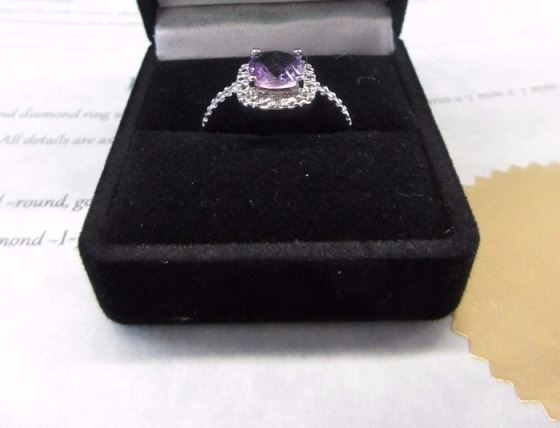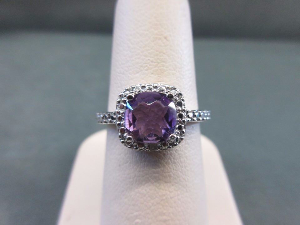 RING - 1.25CT SQUARE CUSION CUT AMETHYST & DIAMOND IN STERLING SILVER SETTING - INCLUDES CERTIFICATE $240