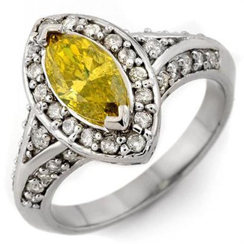 A timeless treasure. A marquise cut canary yellow diamond, surrounded by shiny diamonds takes center in this white gold ring. On each side is a triangular design that's sprinkled with round diamonds.<BR><BR>For thousands of years, diamonds, as the birthstone of April, are known for its elegance, brilliance and purity, and also as a woman's best friend.