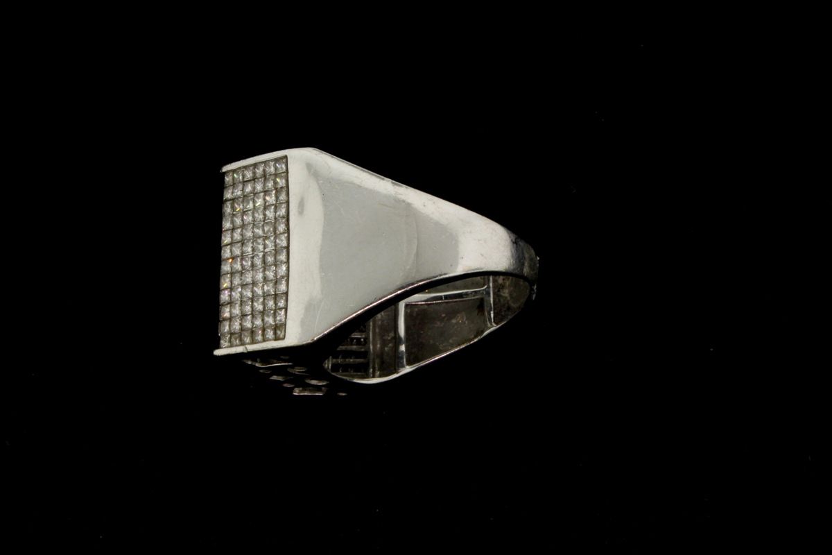 RING: [1] Men's 10kw invisible set ring; three hundred twelve (312) prn diamonds; 1.3mm to 1.4mm =est. 4.45cttw; Good/J/SI1-SI2; 13.5 grams.