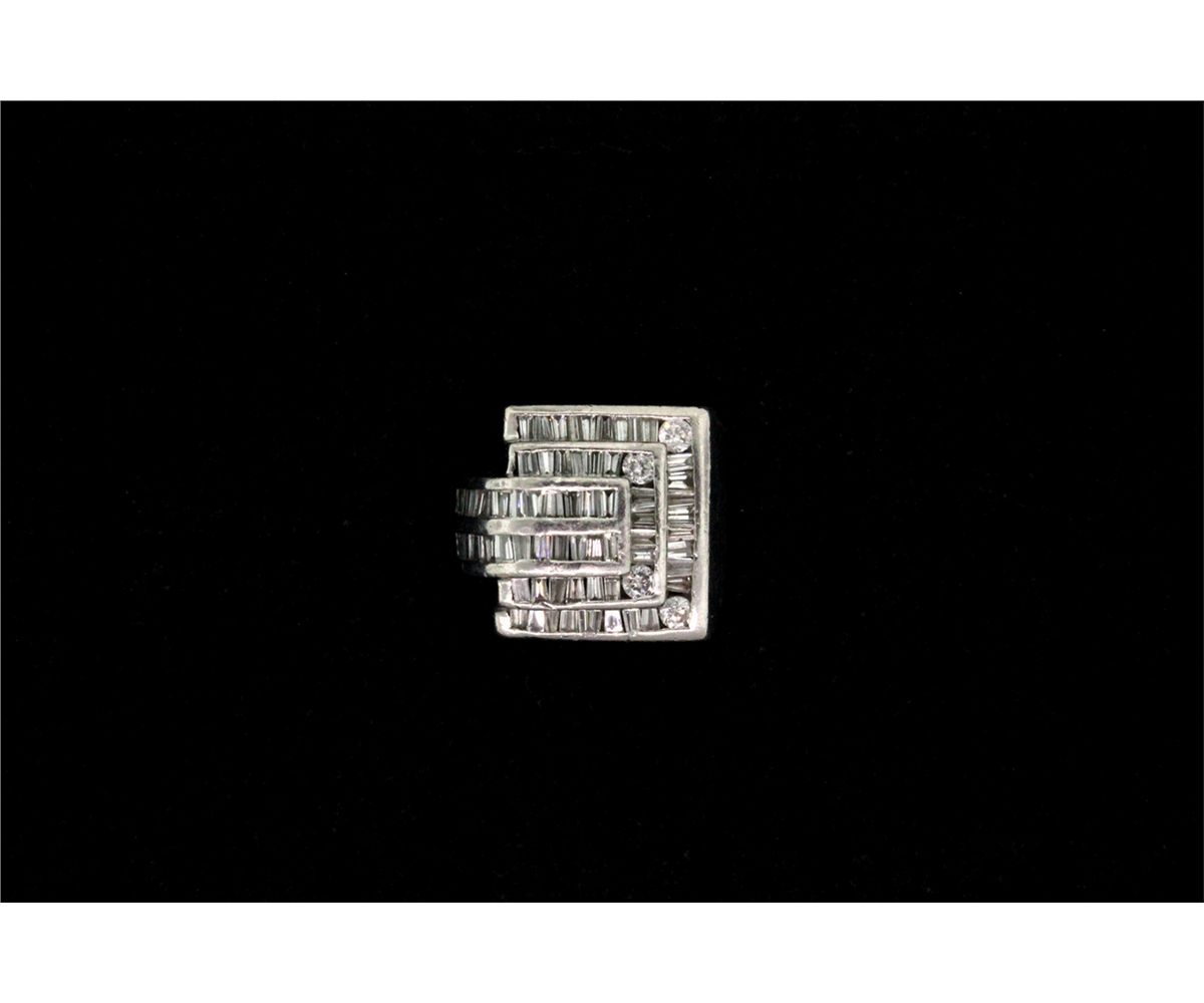 RING: [1] Platinum diamond ring set with 72 baguette and 4 rd diamonds, TWA 2.4 cts, H-J, VS1-I3; s