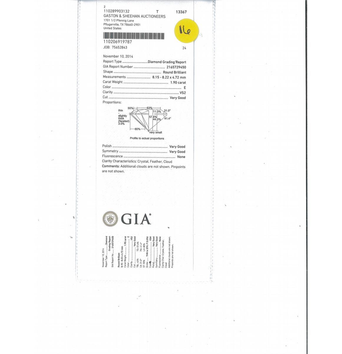 PAYMENTS TO: Gaston & Sheehan Auctioneers, Inc., 1420 FM 685, Pflugerville, TX 78660