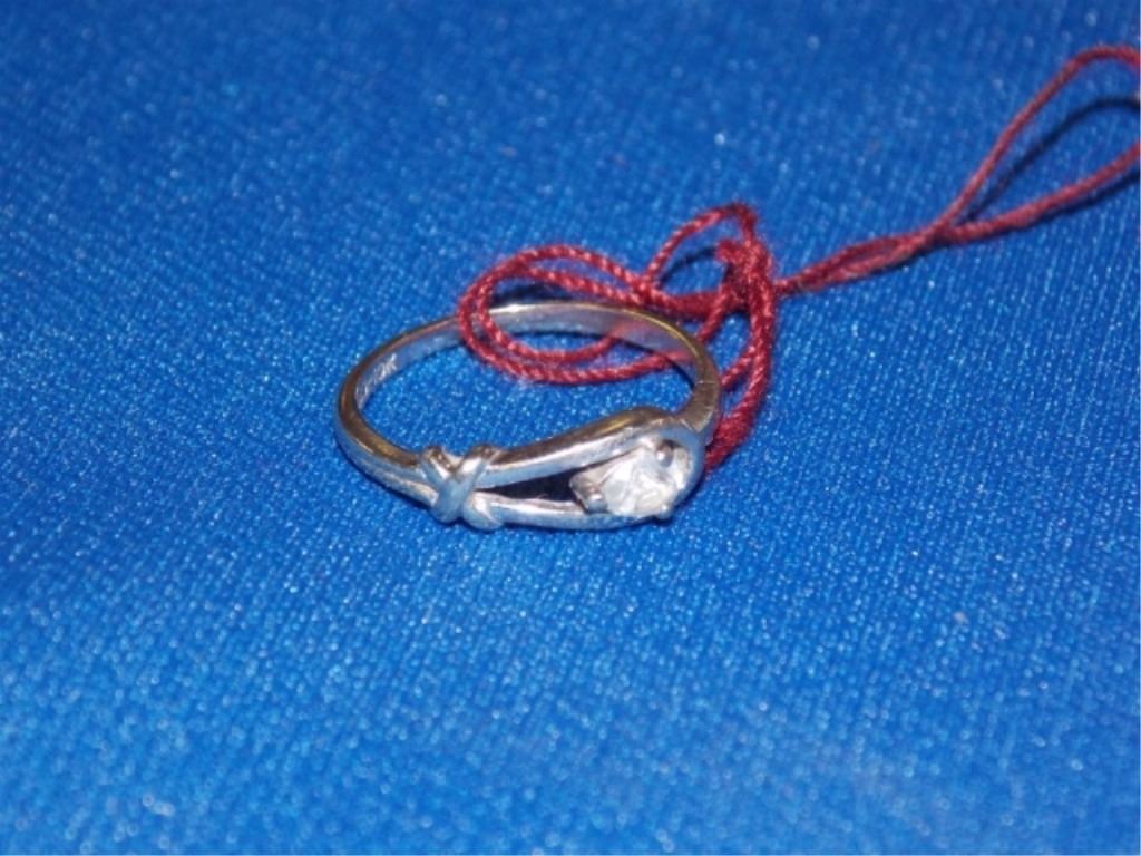RING - 10K WHITE GOLD WITH GEMSTONE - SZ 4.5 (1.4GM) - RETAIL ESTIMATE $350