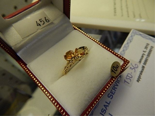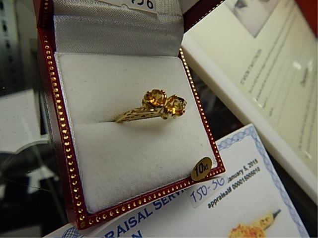 RING - 10K YELLOW GOLD IMPERIAL TOPAZ DOUBLE HEART RING - TTL .5 CARAT WEIGHT BRILIANT TOPAZ - RING TOTAL 2 GRAMS