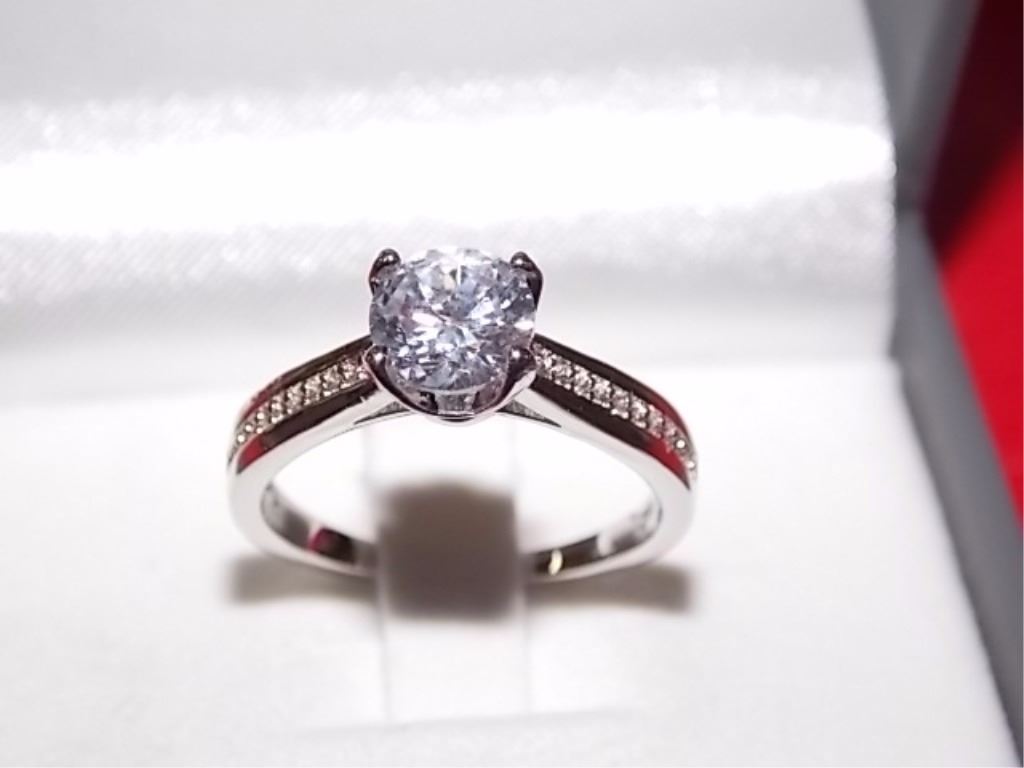 RING - 18K WHITE GOLD PLATED WITH ROUND FACETED SOLITAIRE CRYSTAL - RETAIL ESTIMATE $350