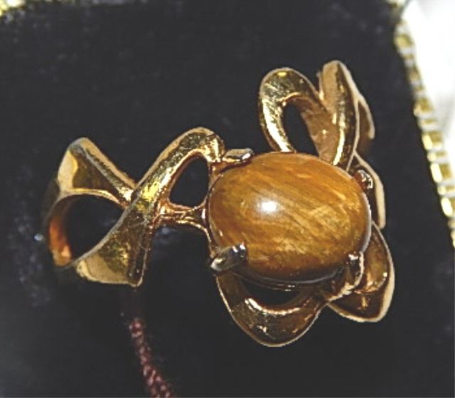 RING - 18KT H.G.E & STERLING SILVER - WITH TIGER EYE - (HGE means "HEAVY GOLD ELECTROPLATE")