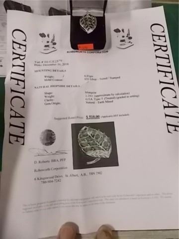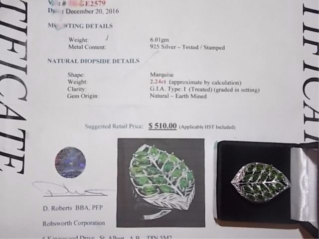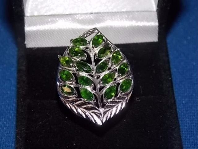 RING - 2.24TCW - MULTIPLE BRILIANT GREEN CHROME DIOPSIDE GEMSTONES IN STERLING SILVER LEAF DESIGNED SETTING - - INCLUDES CERTIFICATE - RETAIL ESTIMATE $510