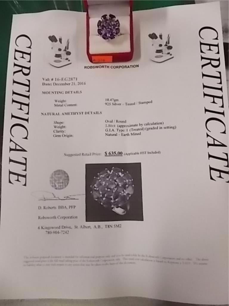 RING - 2.86TCW - CLUSTER OF PURLE AMETHYST IN STERLING SILVER SETTING - INCLUDES CERTIFICATE - RETAIL ESTIMATE $635
