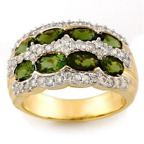 GENUINE 3.00 ctw DIAMOND & GREEN TOURMALINE LADIES RING IN 14KT YELLOW GOLD